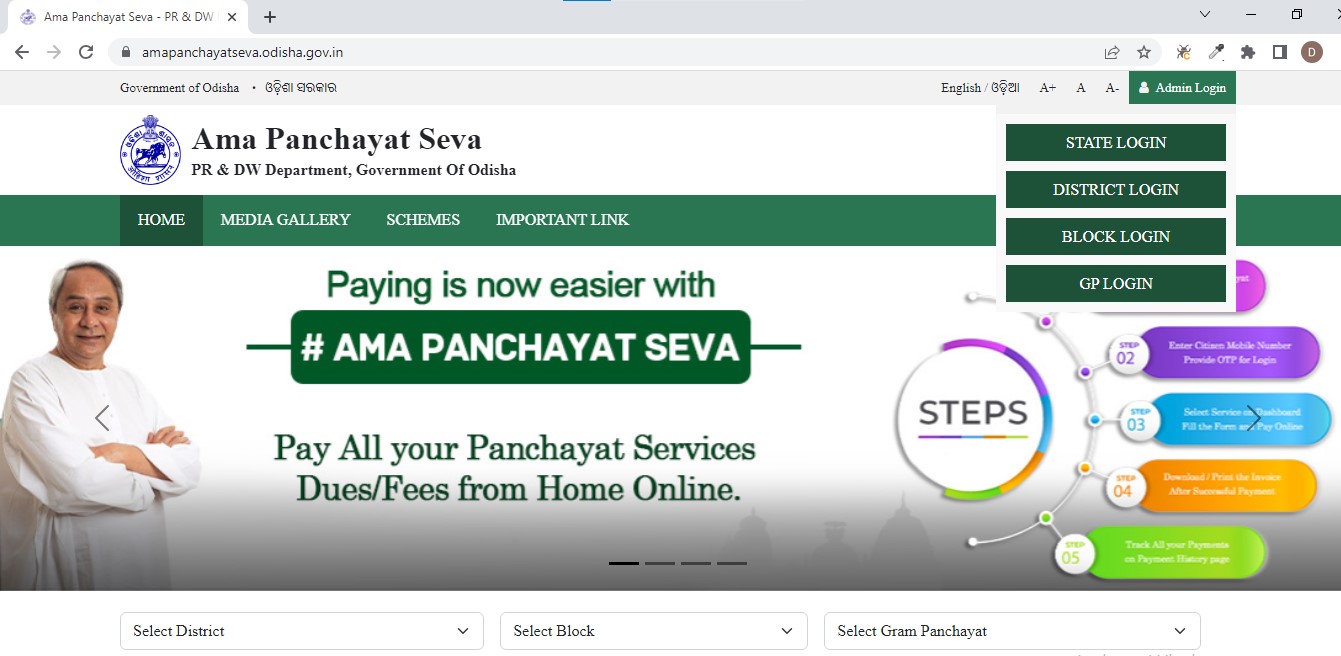 On the Login Page Check the URL which is https://amapanchayatseva.odisha.gov.in/block-admin/login.html